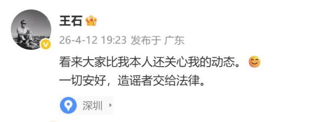 - 王石妻子田朴珺否认王石被抓 造谣者将受法律制裁