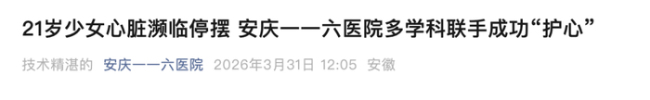 女大学生吃螃蟹休克被抢救。4月11日,安徽安庆某高校21岁的刘同学在社交平台发帖称,自己于3月6日食用螃蟹后引发严重身体不适,出现心源性休克、心肌炎等症状,在宿舍晕倒后被紧急送医抢救。在此期间,安庆一一六医院为其启用了ECMO(体外膜肺氧合)辅助治疗,后又转至安徽医科大学第一附属医院ICU治疗近一个月,前后共花费十多万元(医保报销后)。她表示感谢第一时间把她送到医院的室友,也感谢两家医院医护人员对她的及时抢救与照料,以及医保的报销。