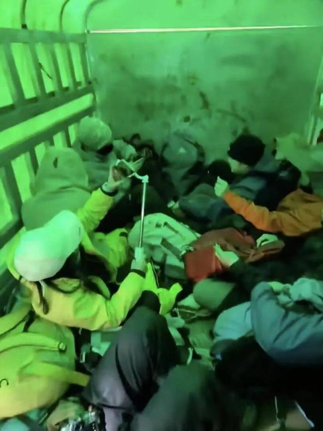 被绿布遮挡得严严实实的后车厢里,身着户外装备的游客紧紧依靠着车身,随着山路上下颠簸,前往四川甘孜康定勒多曼因徒步点。乘坐这辆拉猪车的视频博主澄清道,“没有偷渡啊,更没有去打仗,应该是报了低价团,才有这个待遇。”