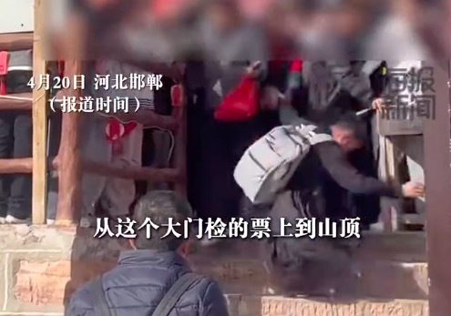 4月20日(报道时间),河北邯郸。男子称古武当山旅游遭不明身份人员拦截查票,拒绝后被多人围堵推下台阶。当事人称,自己从大门检的票到山顶,三个人没有穿工装,也没有工牌,就带了个红袖标,到山顶就拦着我说要看票,对方称“我就是工作人员,不让看票就不让你走。”不仅围堵当事人,还将当事人推下台阶。对此,邯郸市文旅局工作人员回应称:目前双方还没有达成和解,还在调解中。
