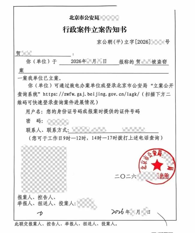 在调取监控后,贺冬冬看到司机假装给她房间拍照,趁他们不注意将包盗走。被抓到后,司机承认了盗窃行为,并承诺一个星期归还,但到期后却失联了。3月16日,贺冬冬的妹妹作为失主之一,前往北京朝阳区的辖区派出所报案,警方以行政案件立案。