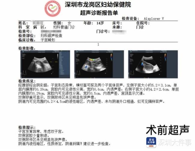 今年3月,小琳迎来人生第一次月经,却随之而来难以忍受的下腹剧痛,蜷缩在床上的她脸色惨白、冷汗直流。起初在外院就诊时,医生仅初步判断为“子宫畸形”,未给出明确治疗方案。两天过去,小琳的疼痛丝毫未减,甚至无法坚持上学。心急如焚的妈妈带着她来到龙岗区妇幼保健院妇科就诊。