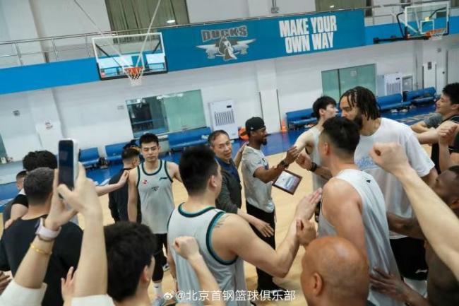许利民送给贝利一张北汽男篮全家福照片作为离别礼物。贝利与教练和队友们相互拥抱,就此作别。