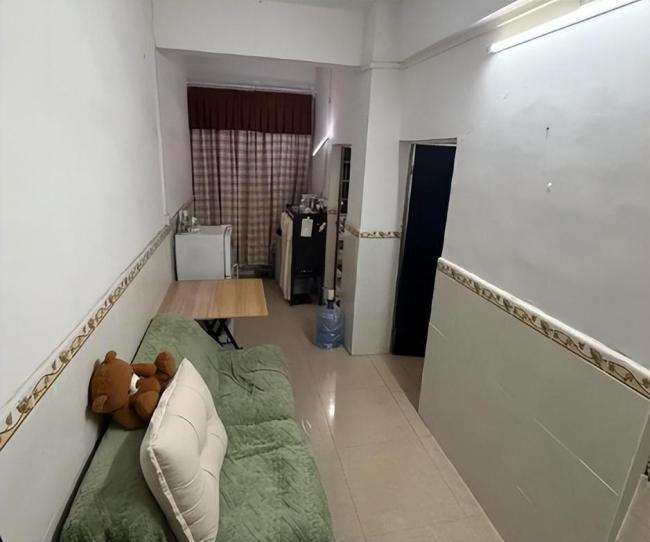 近日,广东广州的王女士以1200元租下一套一房一厅。房子实际空间不算小,但客厅又长又窄——最宽处1.9米,最窄处仅1.6米,长度却达到约7米。