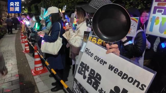 24日晚,日本民众在东京举行集会,抗议日本政府近期修改“防卫装备转移三原则”、推动修改和平宪法等一系列动向。在东京新宿街头,民众表示,日本政府解禁杀伤性武器出口的做法严重背离了日本宪法所确立的和平理念。