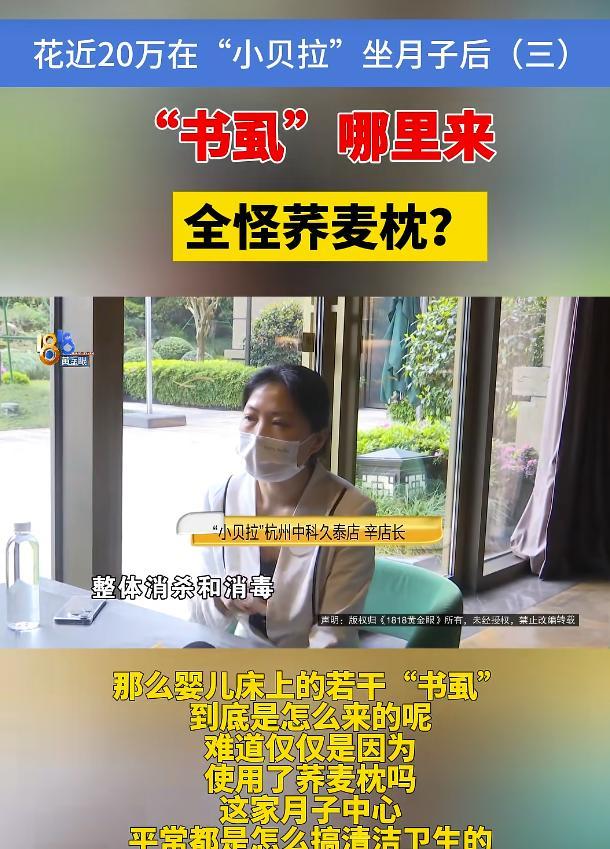 周女士在2024年花费近20万元住进了杭州一家月子中心,并额外支付了将近10万元用于产后康复。然而,她在居住期间遇到了一系列问题。首先是月子餐的问题,食物中出现了炸薯条、炸蘑菇、冰凉的奶昔,甚至有一次鸡翅是臭的,还吃出了碎陶瓷片。随后,她被安排到另一家门店,却发现婴儿床上有很多小虫子,经鉴定为“书虱”。