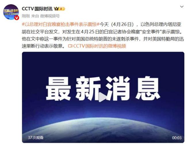 4月26日,以色列总理内塔尼亚胡在社交平台上发文,对前一天发生在白宫记者协会晚宴上的“安全事件”表示震惊。他称这一事件为针对美国总统特朗普的未遂刺杀,并赞扬了美国特勤局迅速果断的行动。