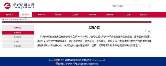绍兴轨道交通集团是绍兴市政府直属国有独资企业,由市国资委授权经营有关国有资产并实施监督,实行独立核算、自主经营、自负盈亏、自担风险。公司主要负责轨道交通的建设、运营、管理等工作以及市政府授权地块的封闭运作。国家企业信用信息公示系统显示,绍兴市轨道交通集团有限公司成立于2015年,注册资本200000万元人民币,法定代表人为张晓冬。