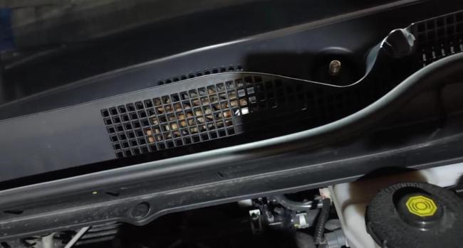 视频画面显示,汽修店师傅扒开车内的空调过滤口,里面满满当当都是榛子,连引擎盖下的雨刮器旁边也全是榛子。车主放在车库的一大袋榛子却仅剩一小部分了。