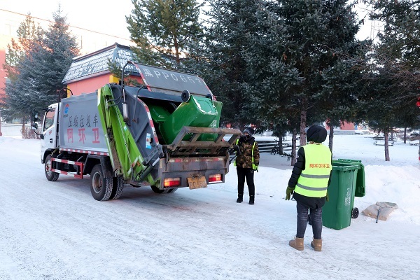 街头寒冷如针,行人纷纷穿上厚重羽绒服、裹紧棉帽抵御严寒,车辆在淡淡的寒气中缓行,雾凇琼枝与朦胧雾气交织,宛如仙境。即便气温跌破-40℃,环卫工人依旧坚守岗位,按时将责任区垃圾清运至压缩车,保障生活垃圾日产日清。林业局物业公司第一集中供热车间三台锅炉满负荷运行,一网出水温度从12月初的70℃提升至85℃,用持续热源守护居民温暖过冬。