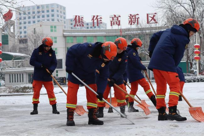 1月20日,郑州消防救援机动支队迅速响应,调集400余名指战员和20台救援车辆,携带雪铲、融雪剂、推雪板等千余件装备,分赴郑州、洛阳、南阳等五市七地,集中力量攻坚城市主干道、学校及医院周边、交通场站等关键区域。